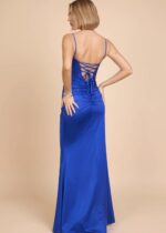 Vestido de licra satinado de espalda cruzada con abertura
